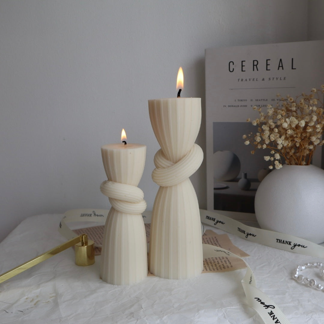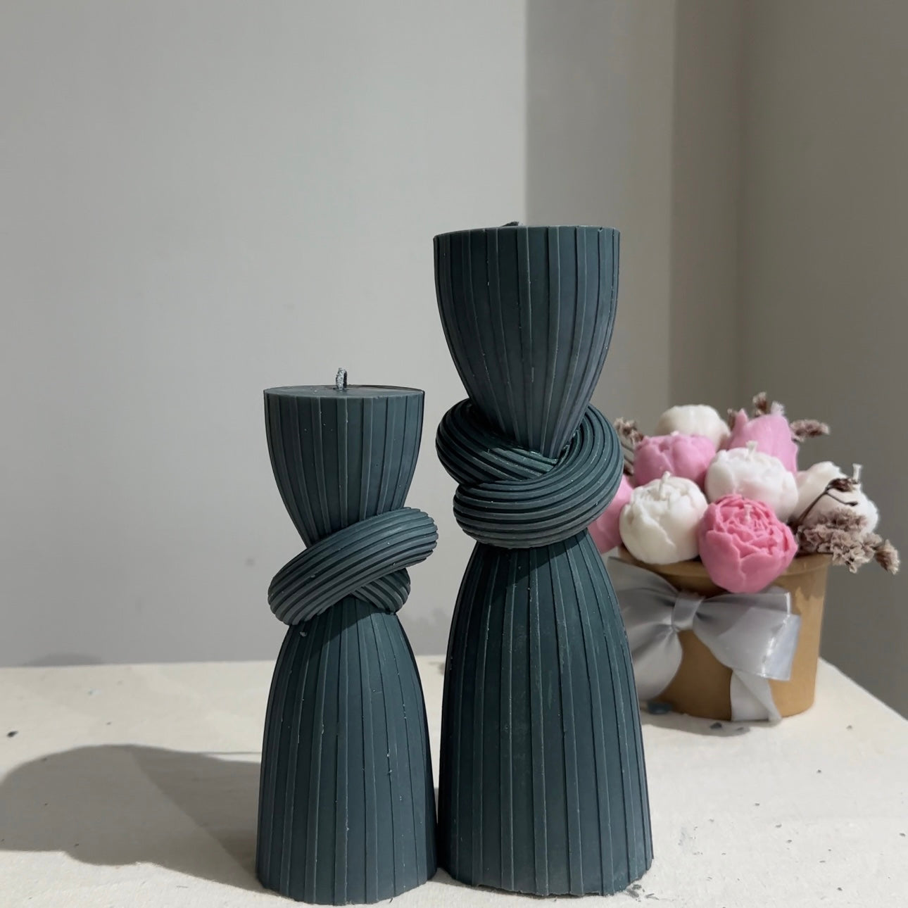 Un dúo elegante y simbólico. El set “Nodo” está compuesto por dos velas de diseño minimalista con un distintivo nudo que representa unión y equilibrio. Hechas a mano con 100% cera de soja natural y mechas de algodón, estas velas no solo decoran, sino que también transmiten intención y estilo.