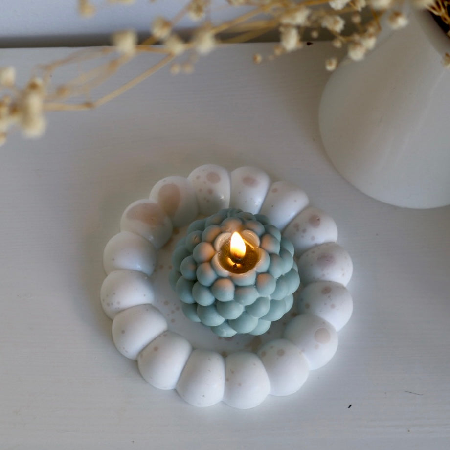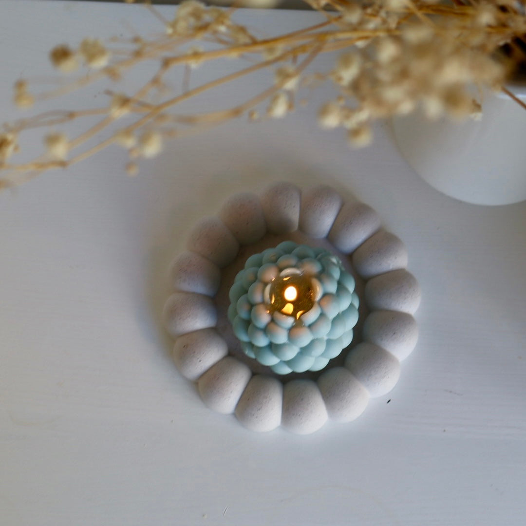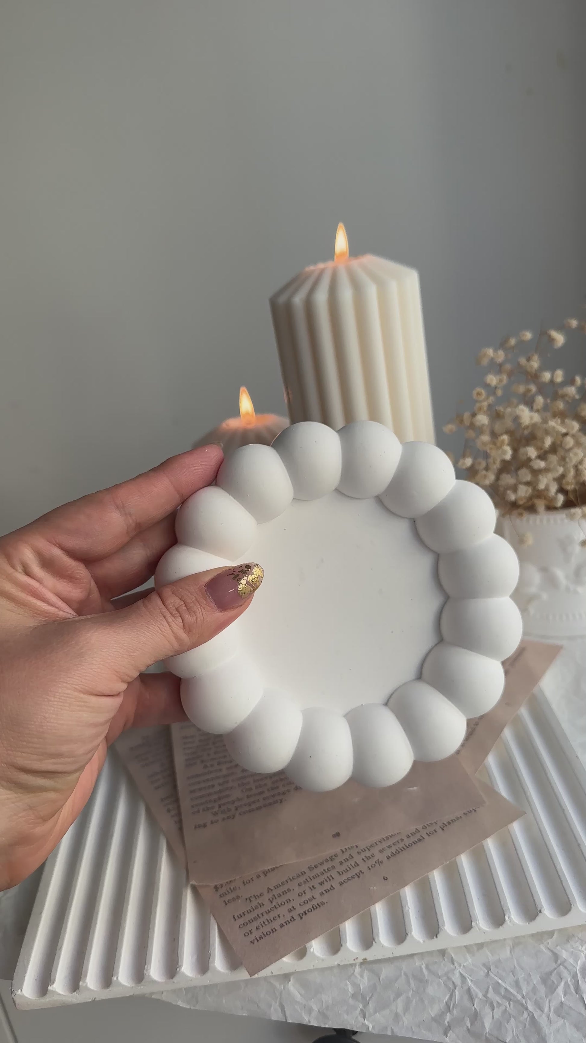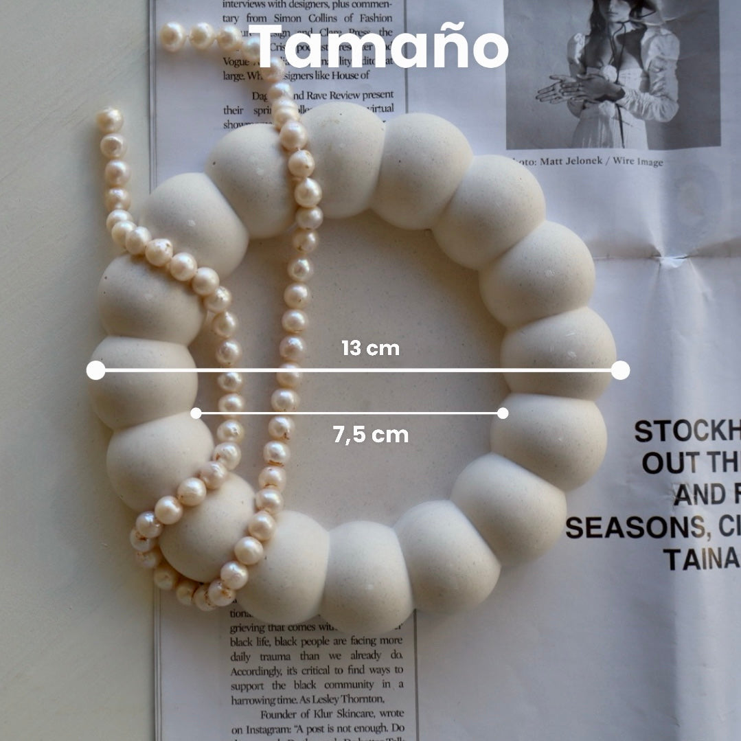 Un accesorio único hecho a mano en 100% yeso artesanal, con forma redonda y borde en relieve que imita burbujas suaves. Su diseño moderno y lúdico lo convierte en una pieza decorativa funcional y elegante para cualquier rincón de tu hogar.