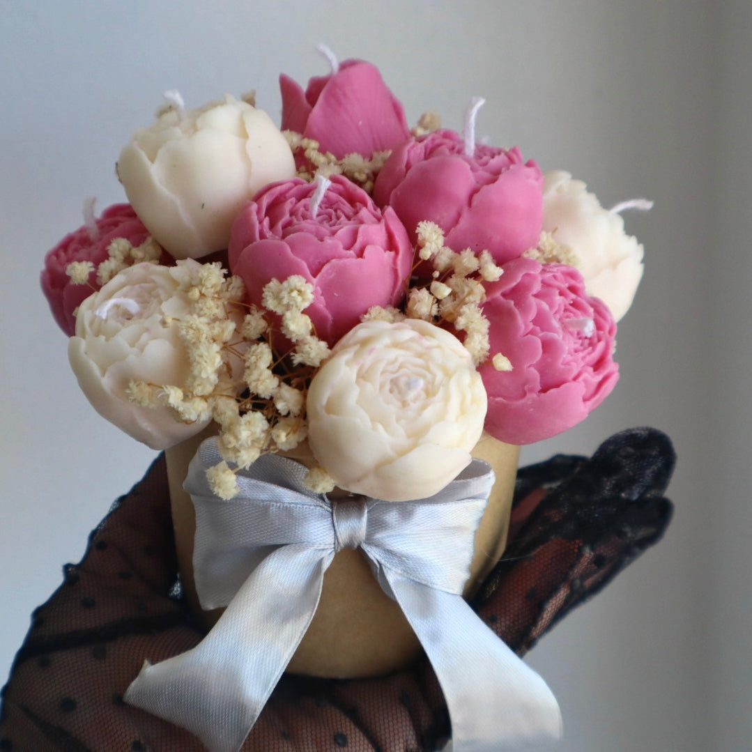 Ramo aromático con 10 peonías y un tulipán — un bouquet pequeño, lindo y delicado, el regalo perfecto para tu celebración.