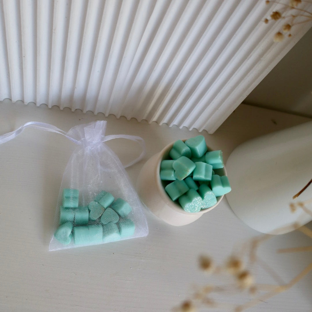 Coloca algunos corazones en tu aromalámpara. Gracias al calor directo, el aroma se libera de manera más intensa y rápida, llenando el ambiente con notas deliciosas. -