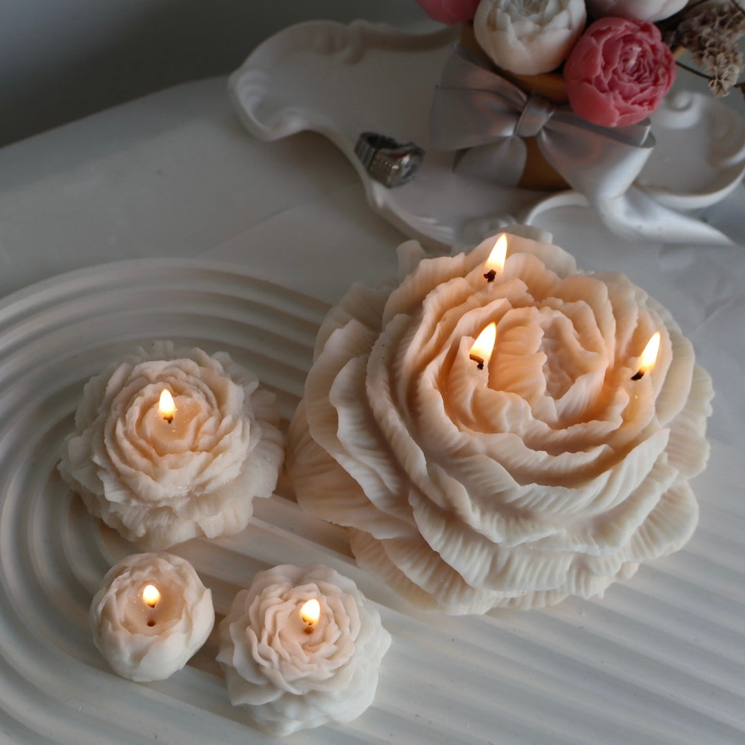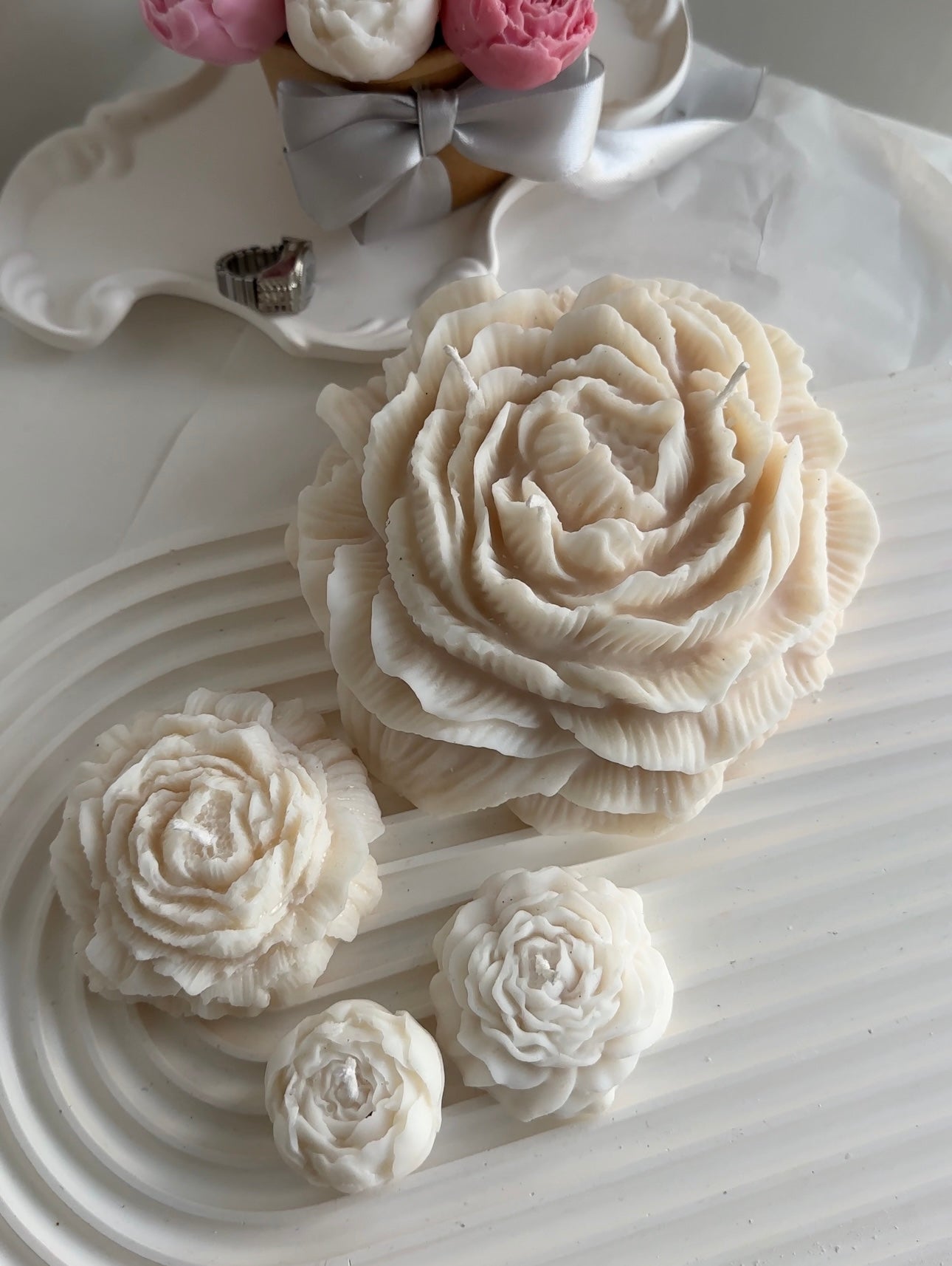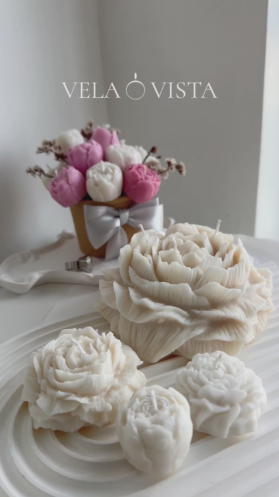 Toda la belleza de las peonías en un solo set.Este conjunto incluye 4 velas artesanales con forma de flor, inspiradas en la delicadeza de los pétalos de peonía. Hechas a mano con cera 100% vegetal, son perfectas para decorar o regalar.