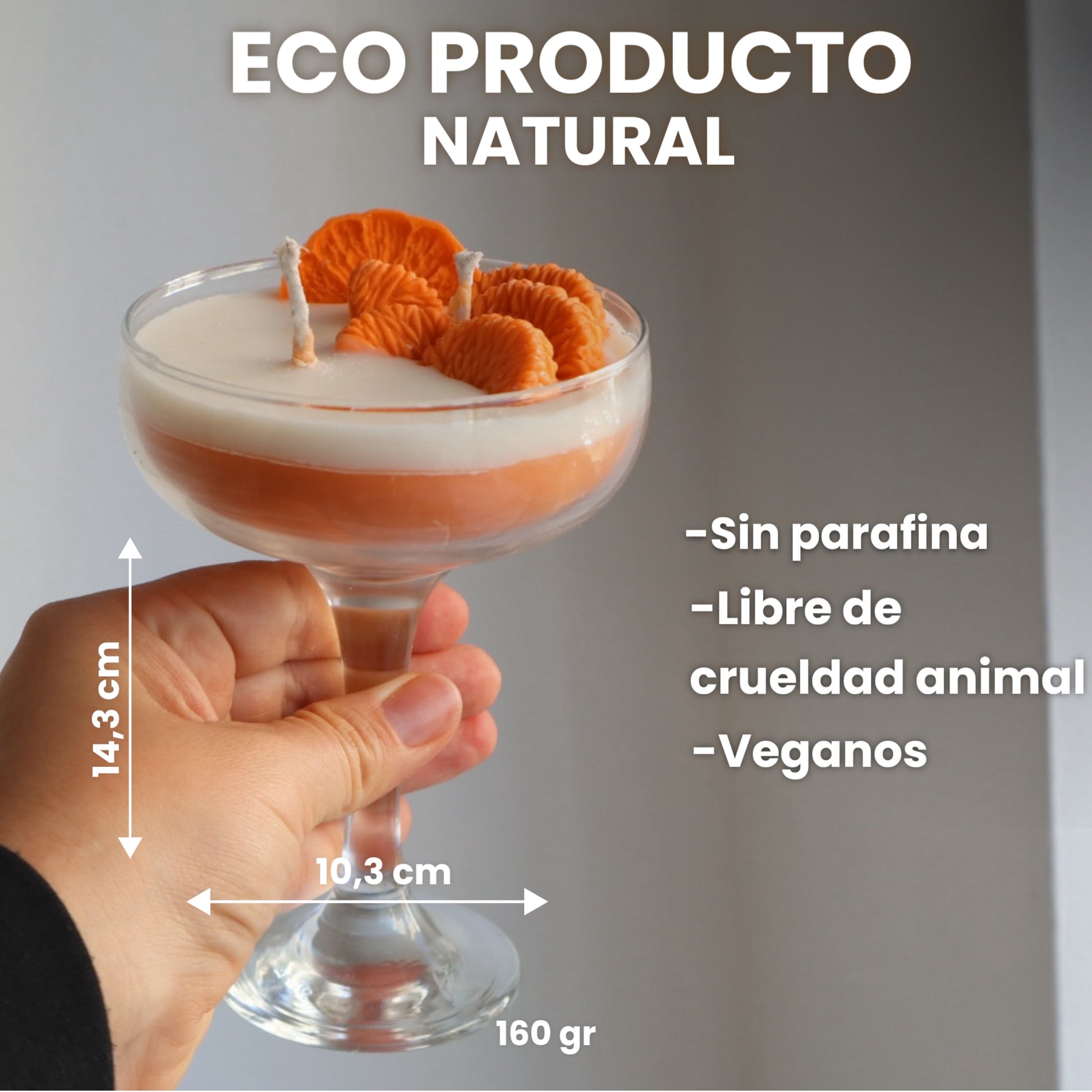 Dale a tu espacio un toque de frescura, calidez y estilo con esta vela tipo cóctel. Una pieza que mezcla aroma, diseño y alegría.