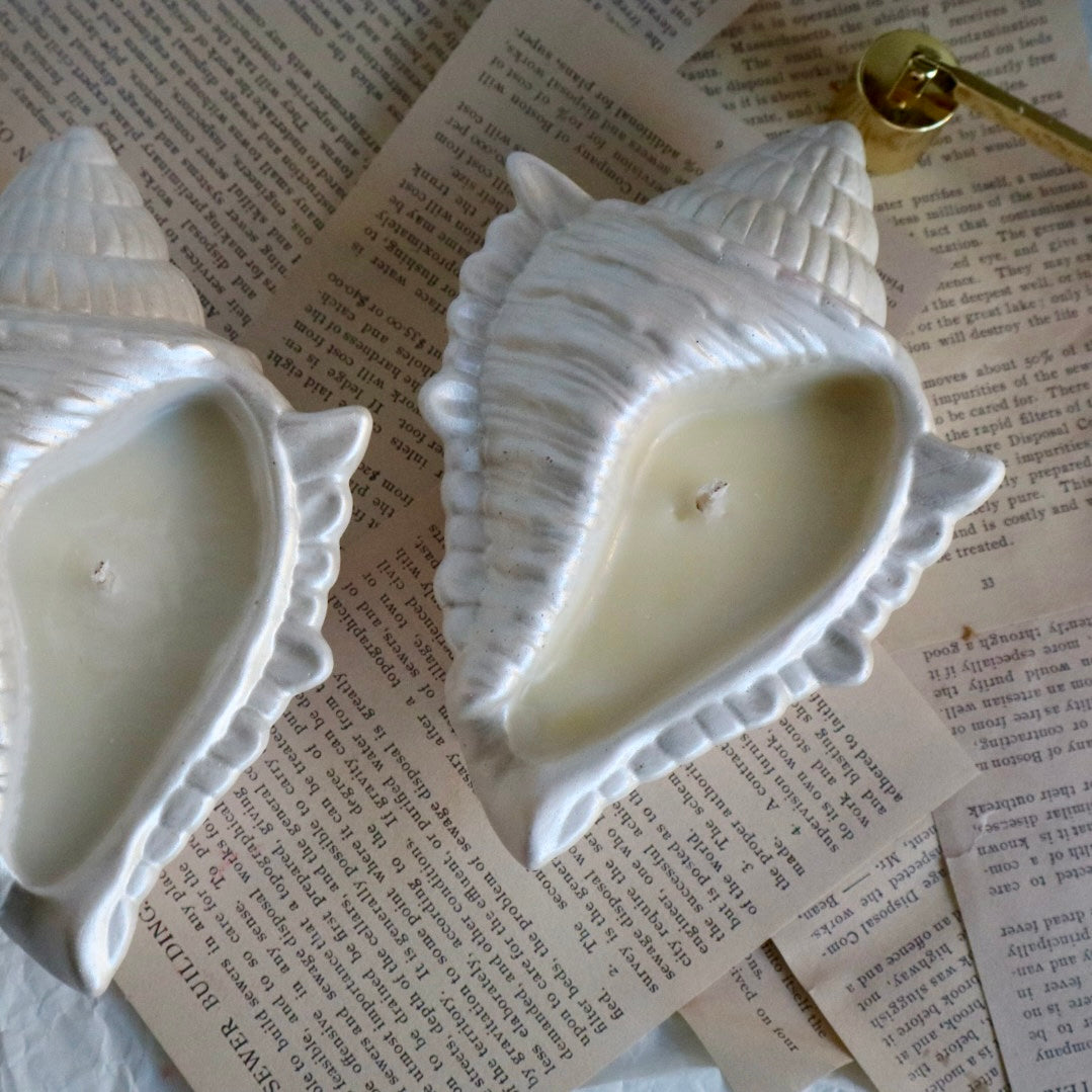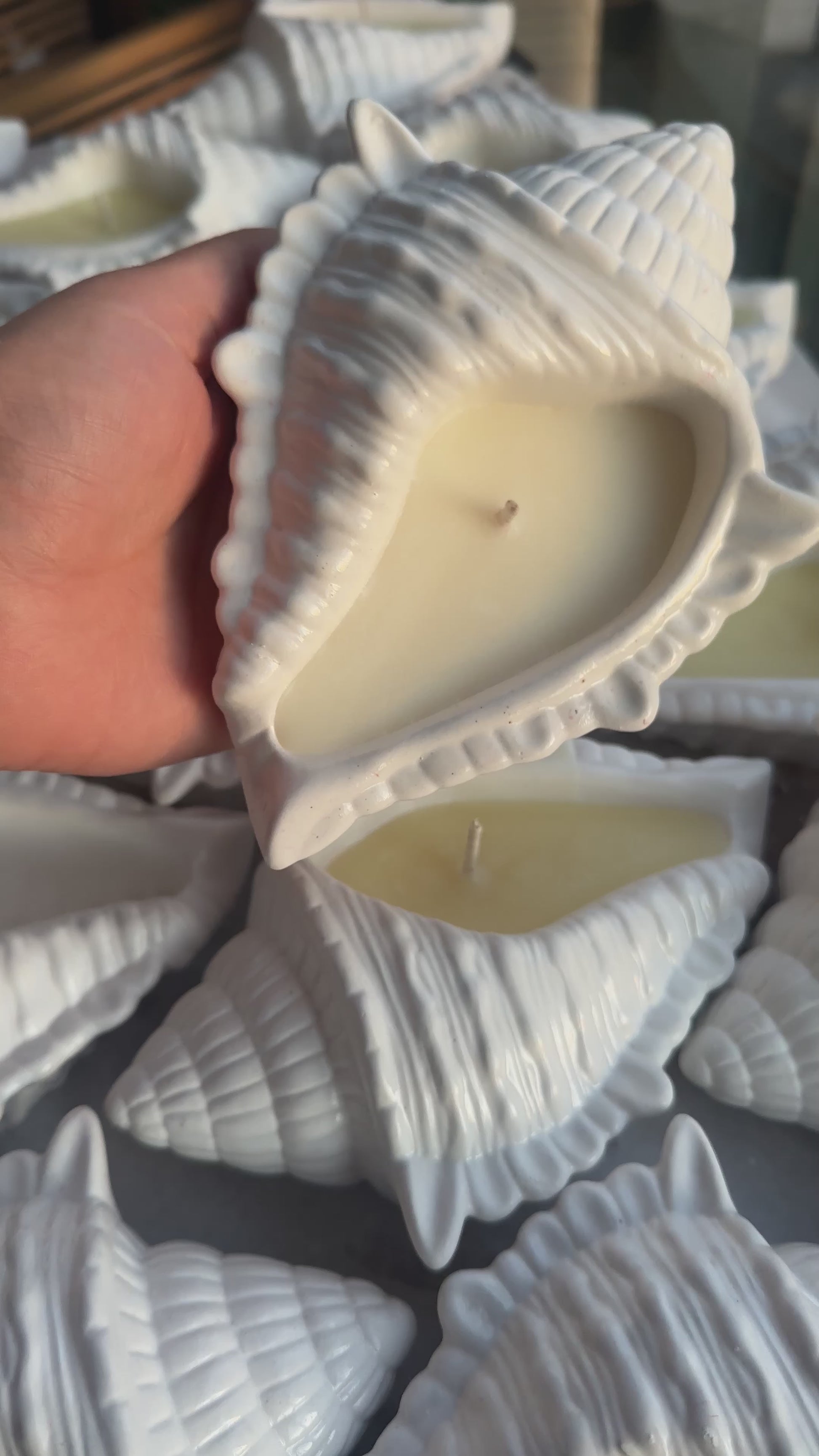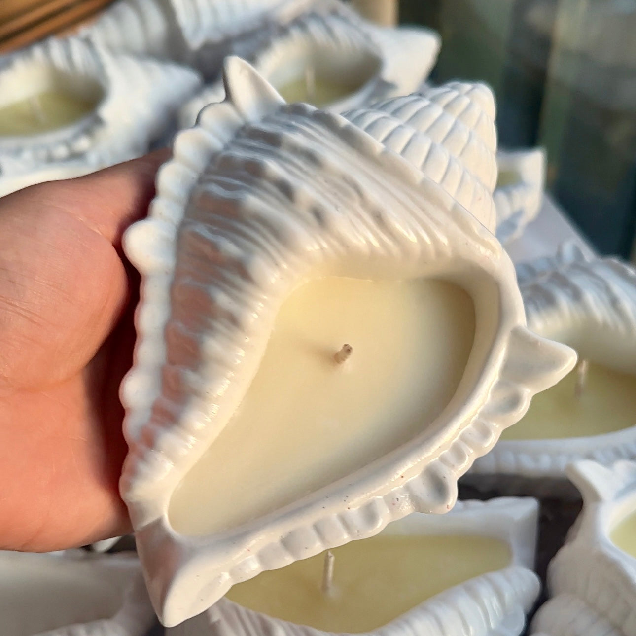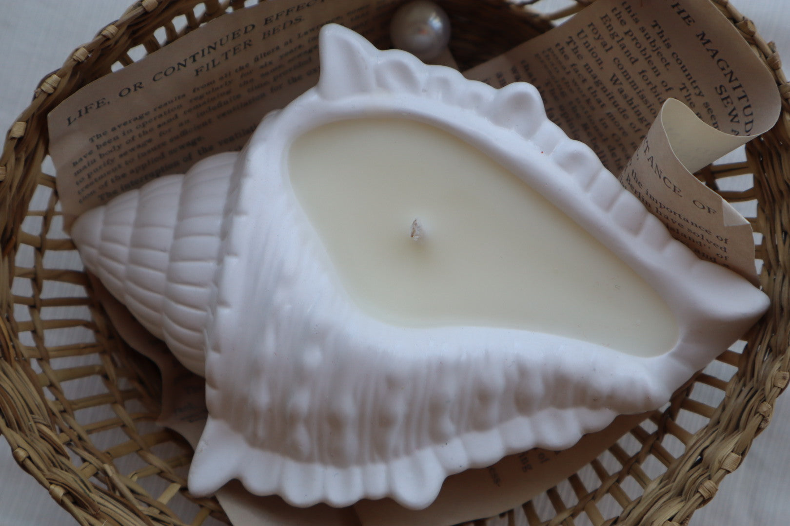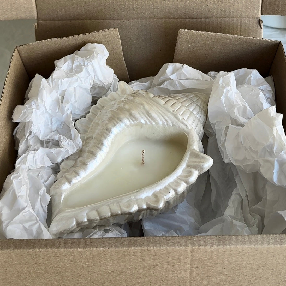 Increíblemente elegante, esta vela aromática en forma de concha captura los aromas más frescos del verano.