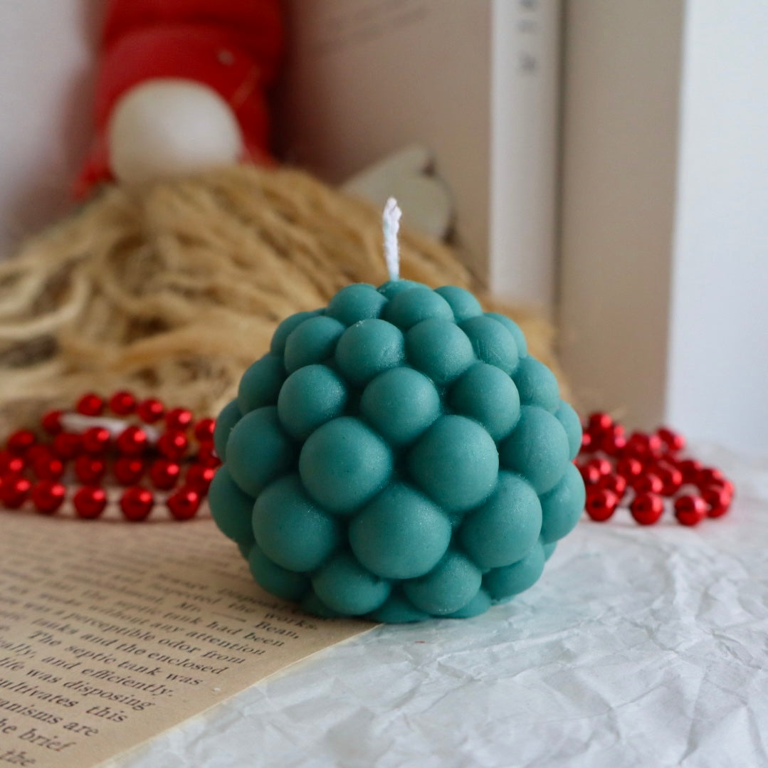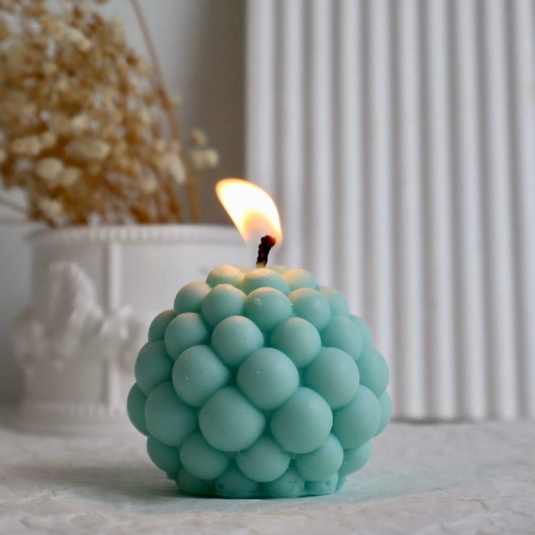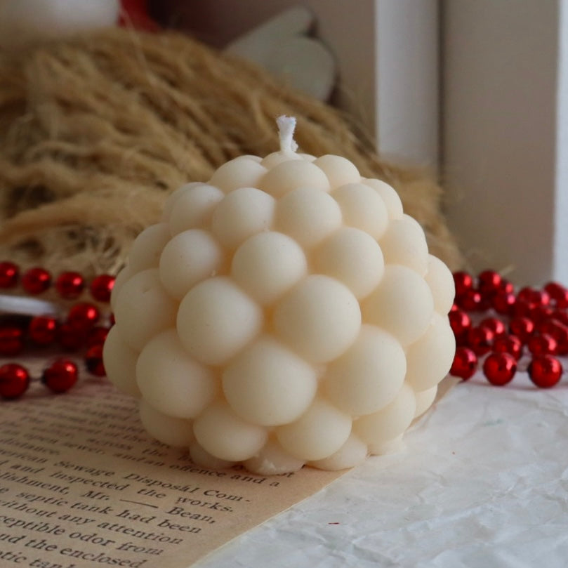 Una vela única elaborada a mano, con forma de burbujas redondeadas que aportan un toque moderno y encantador a cualquier espacio.