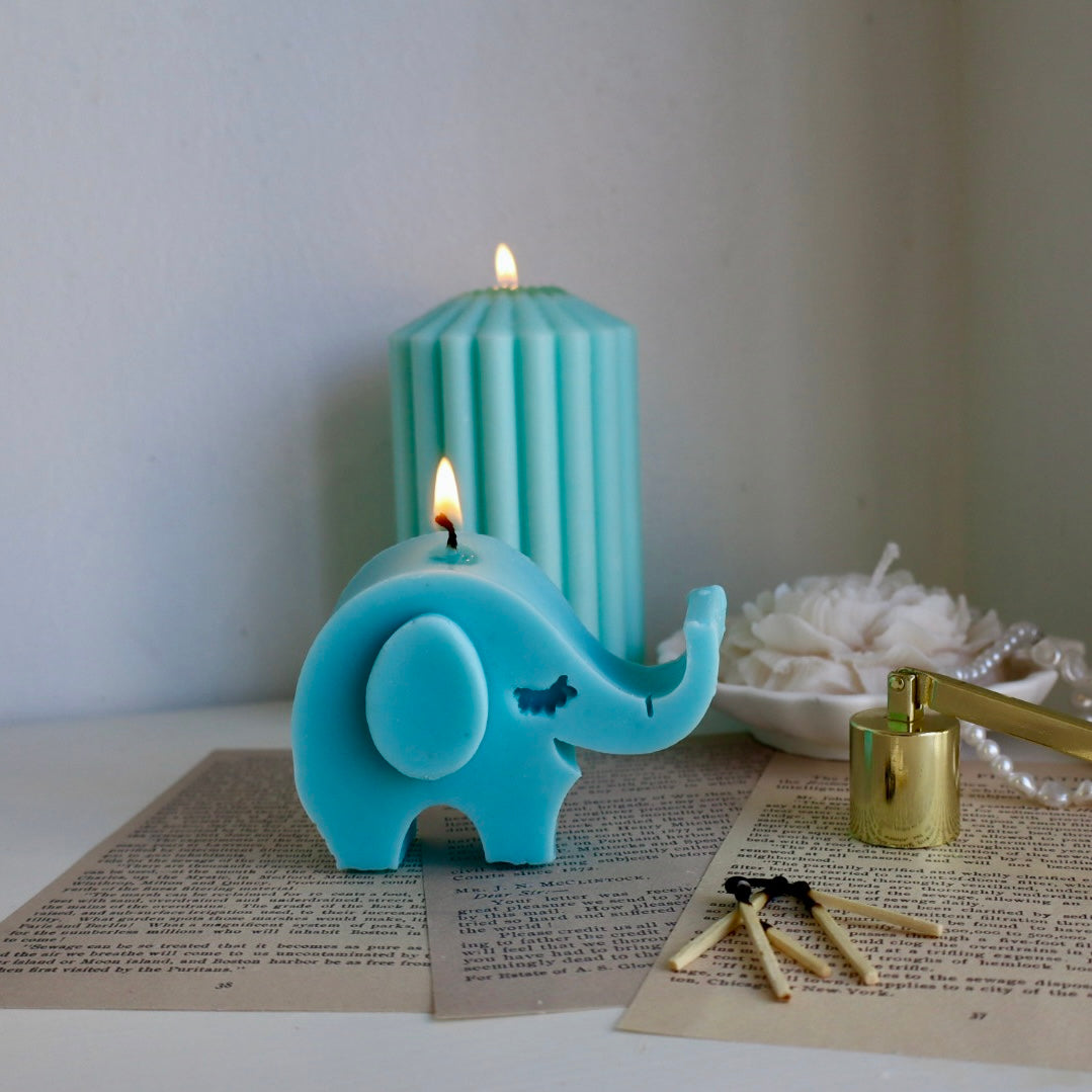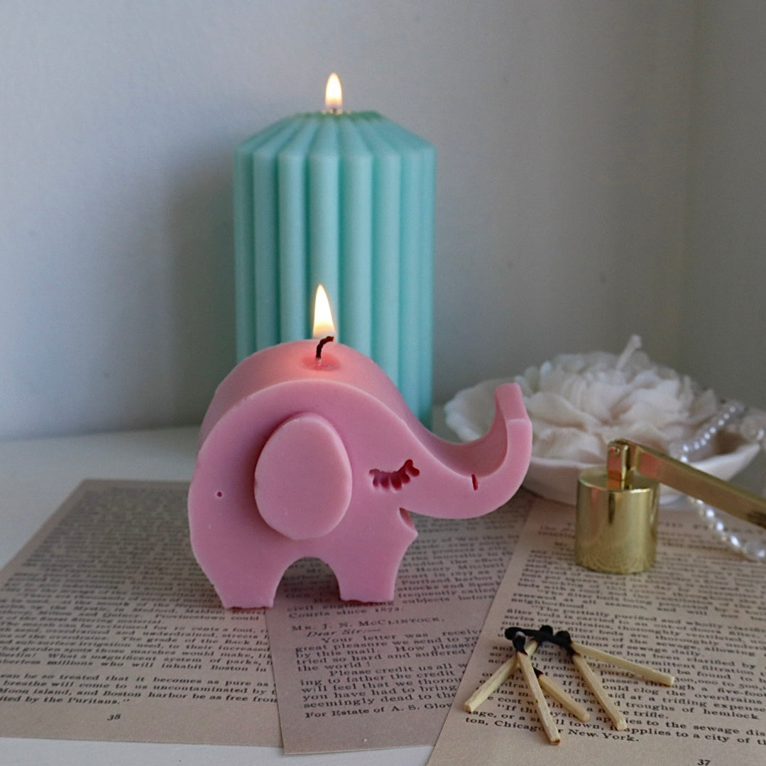 Un tierno elefantito hecho vela, ideal para llenar tu espacio de dulzura y estilo.
